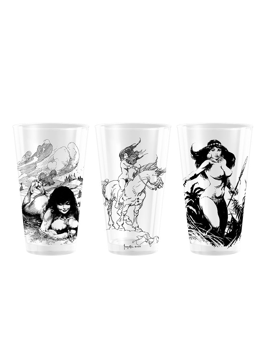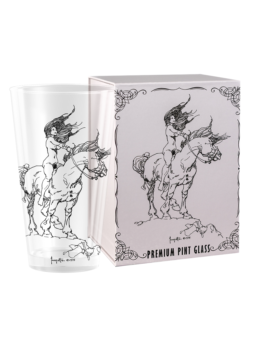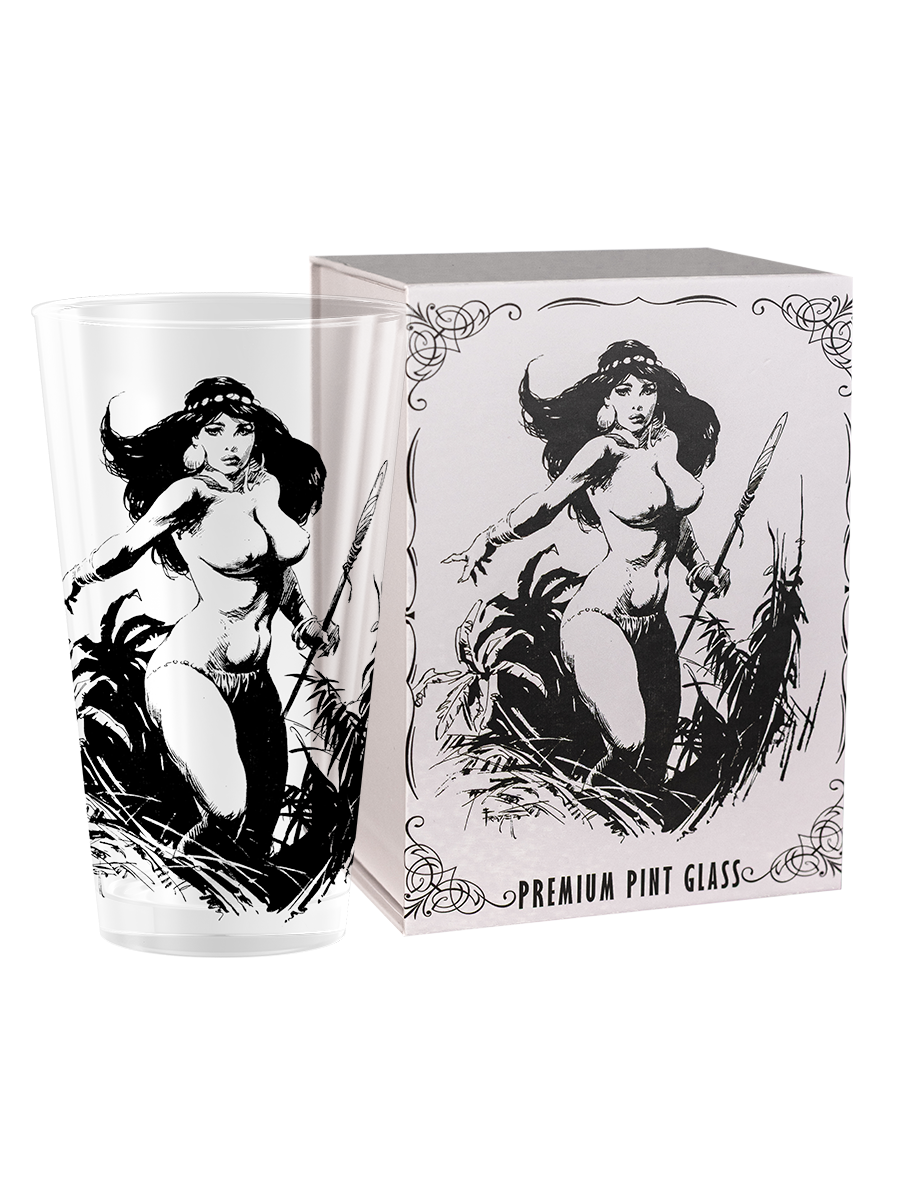 Introducing the limited edition Frazetta Pint Glass Series, featuring The Giantess, Girl on Horse, and Primitive Beauty. Each 16oz glass showcases a classic Frank Frazetta masterpiece, thermal-printed for long-lasting clarity and designed for both use and display. Each glass comes packaged in a custom Frazetta gift box.