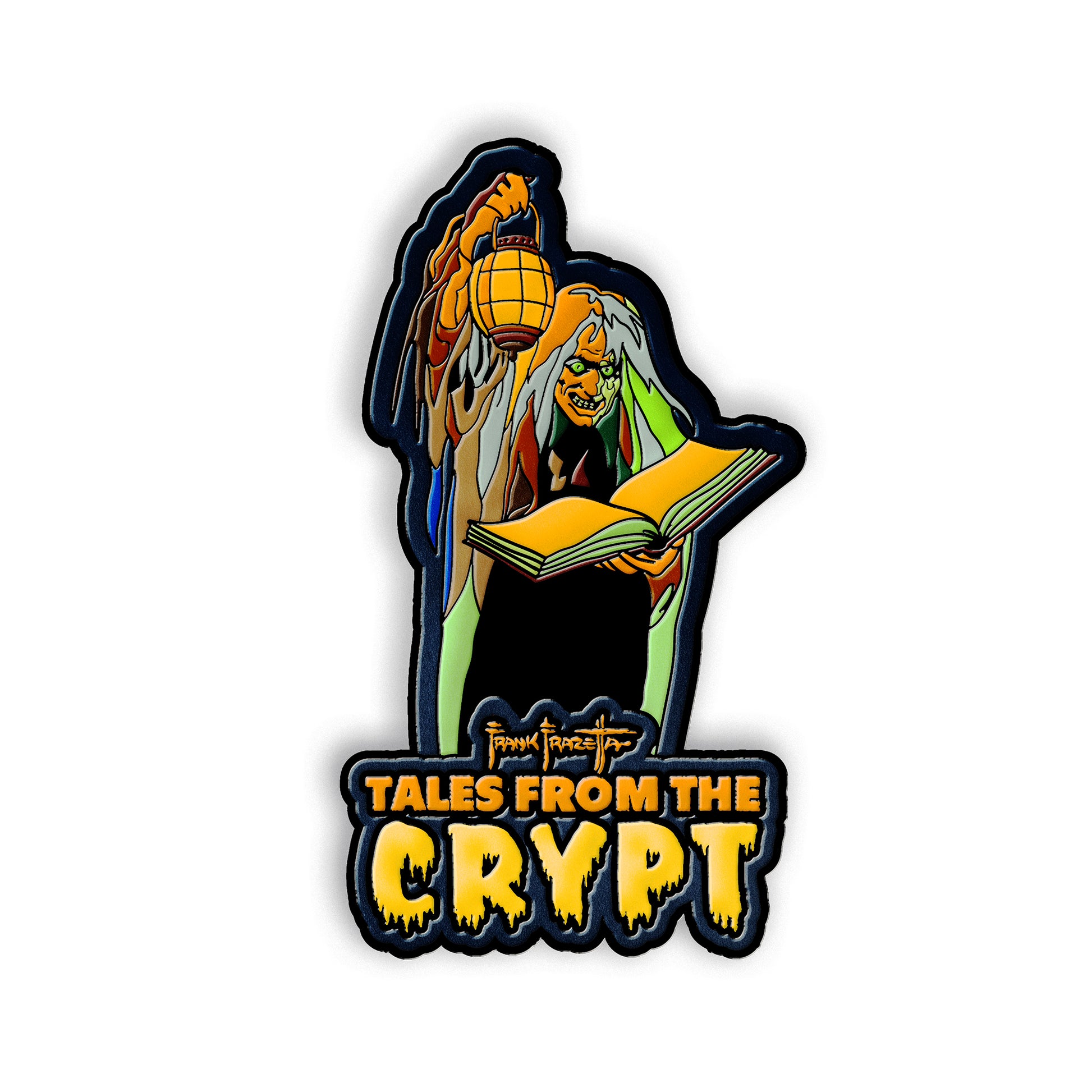 Frank Frazetta's 1964 cover artwork to EC Comics Tales from the Crypt paperback comes to life with this premium Crypt Keeper 3" soft enamel pin. Almost 60 years after the initial publication, Frazetta's groundbreaking work is recognized in the official collection brought to you in collaboration between Frazetta Girls and EC Comics!