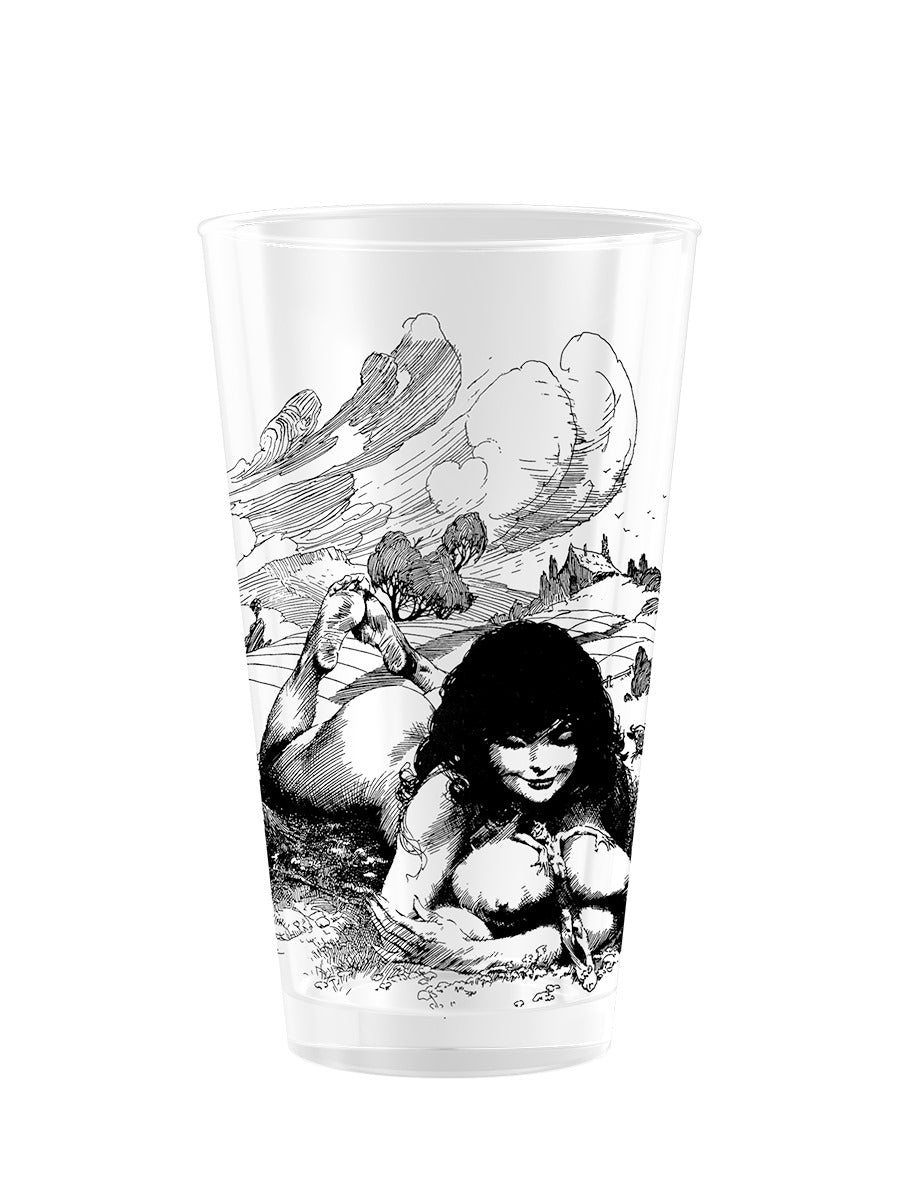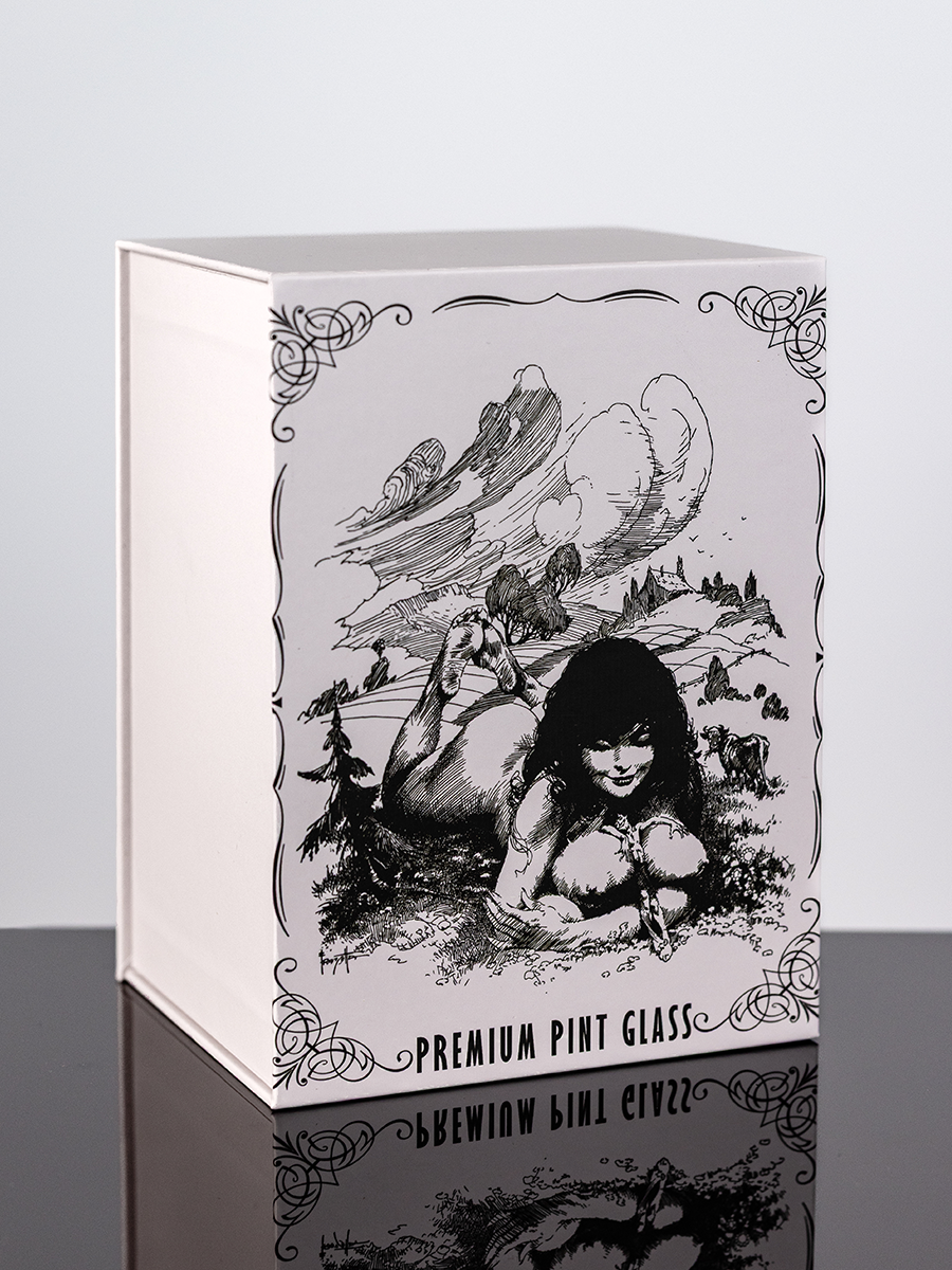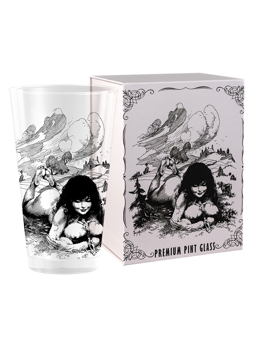 This 16oz pint glass features Frank Frazetta’s iconic The Giantess. Made for everyday use or display, each glass comes packaged in a custom Frazetta gift box.